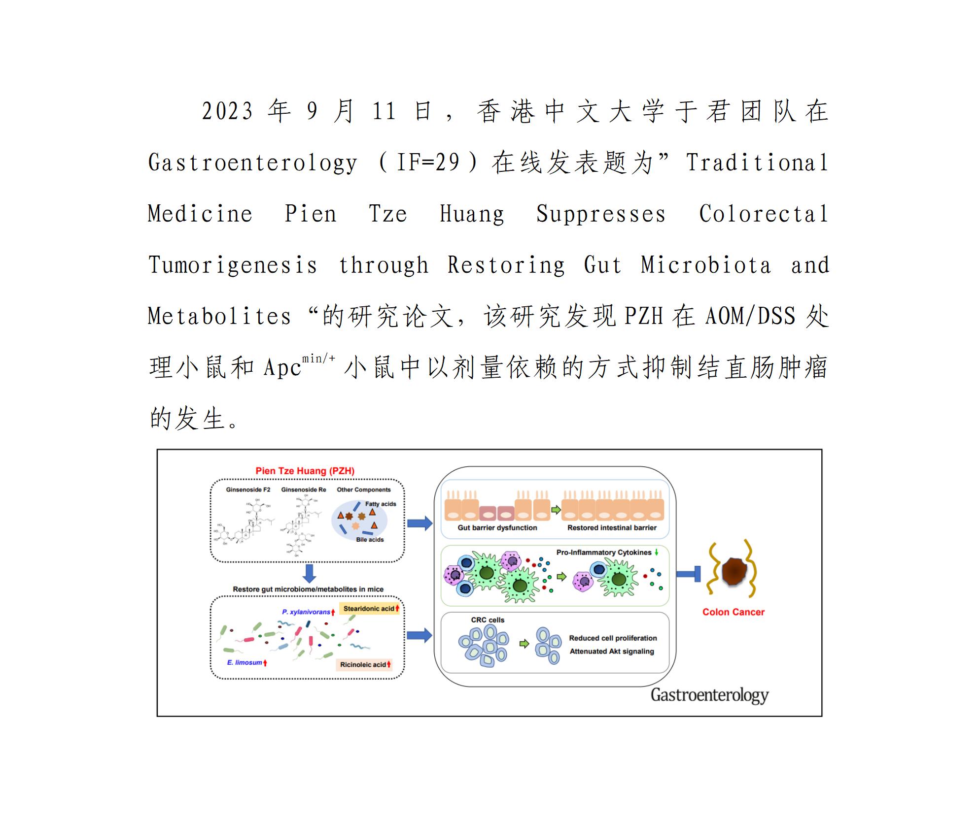 片仔癀新作用!香港中文大学于君团队发现片仔癀抑制结直肠癌的发生