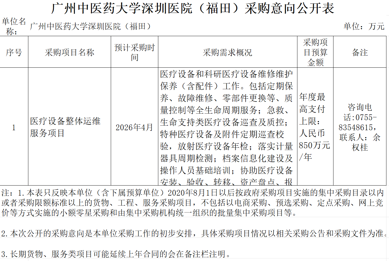 广州中医药大学深圳医院(福田)采购意向公开表