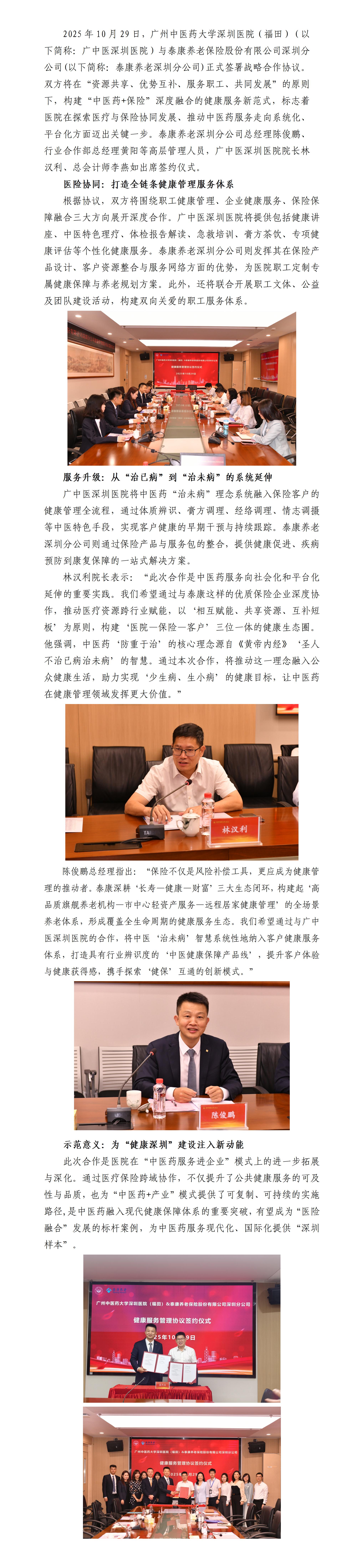 广中医深圳医院携手泰康养老深圳分公司,共筑“中医药+保险”一体化健康管理新生态