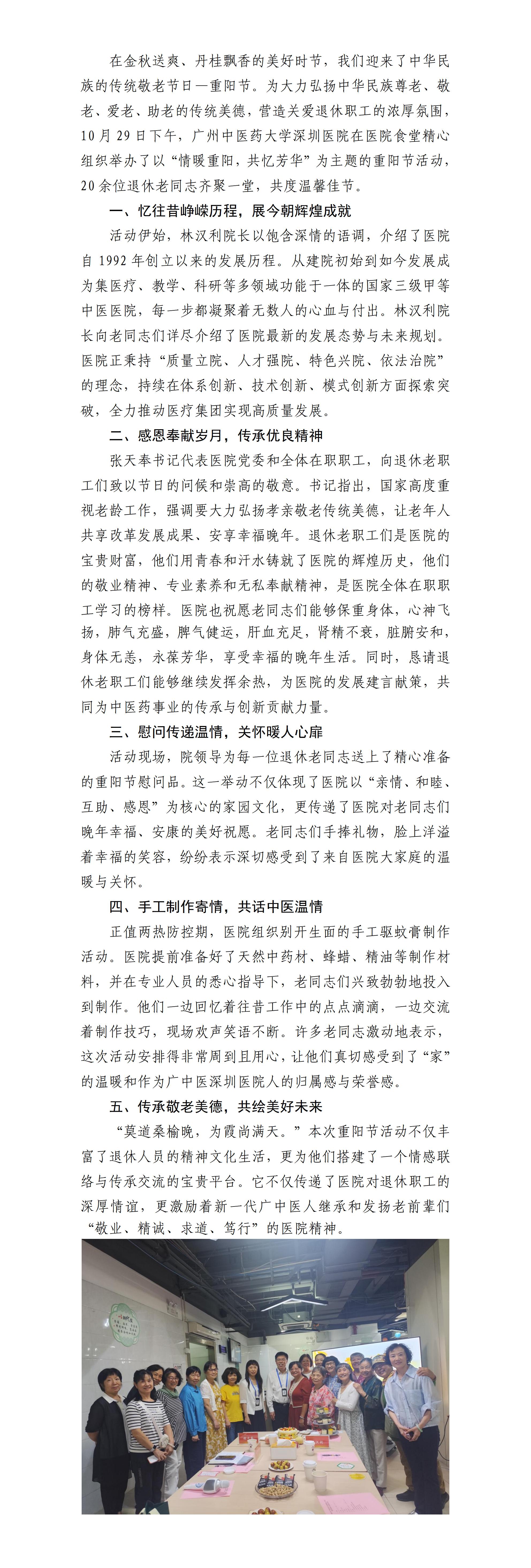 情暖重阳,共忆芳华——广州中医药大学深圳医院(福田)重阳节活动暖人心
