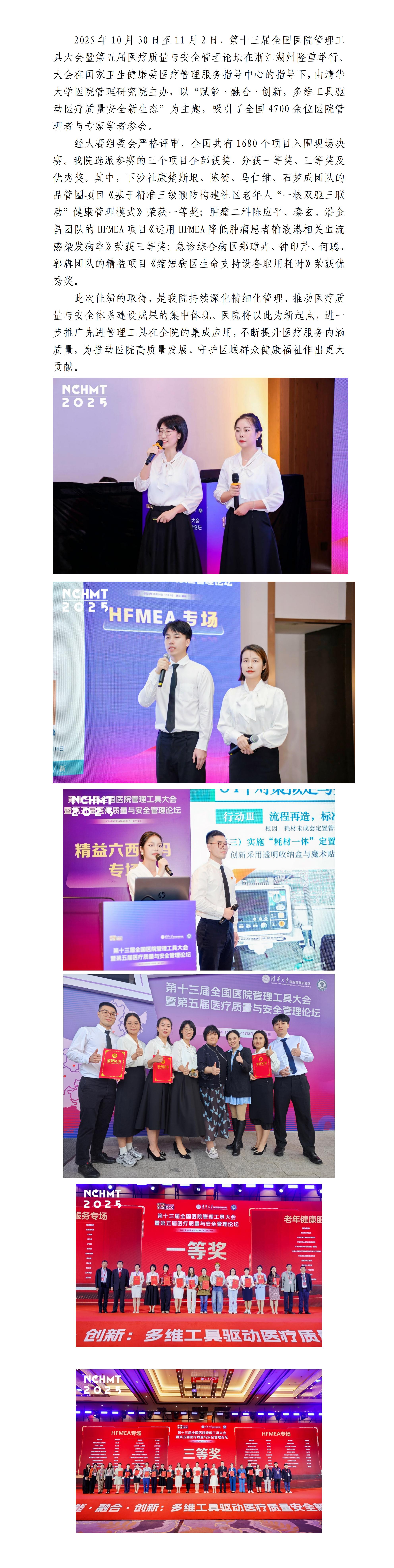 精管利器启新程,杏林扬帆拓新境——广中医深圳医院三项目荣获第十三届全国医院管理工具大会奖项