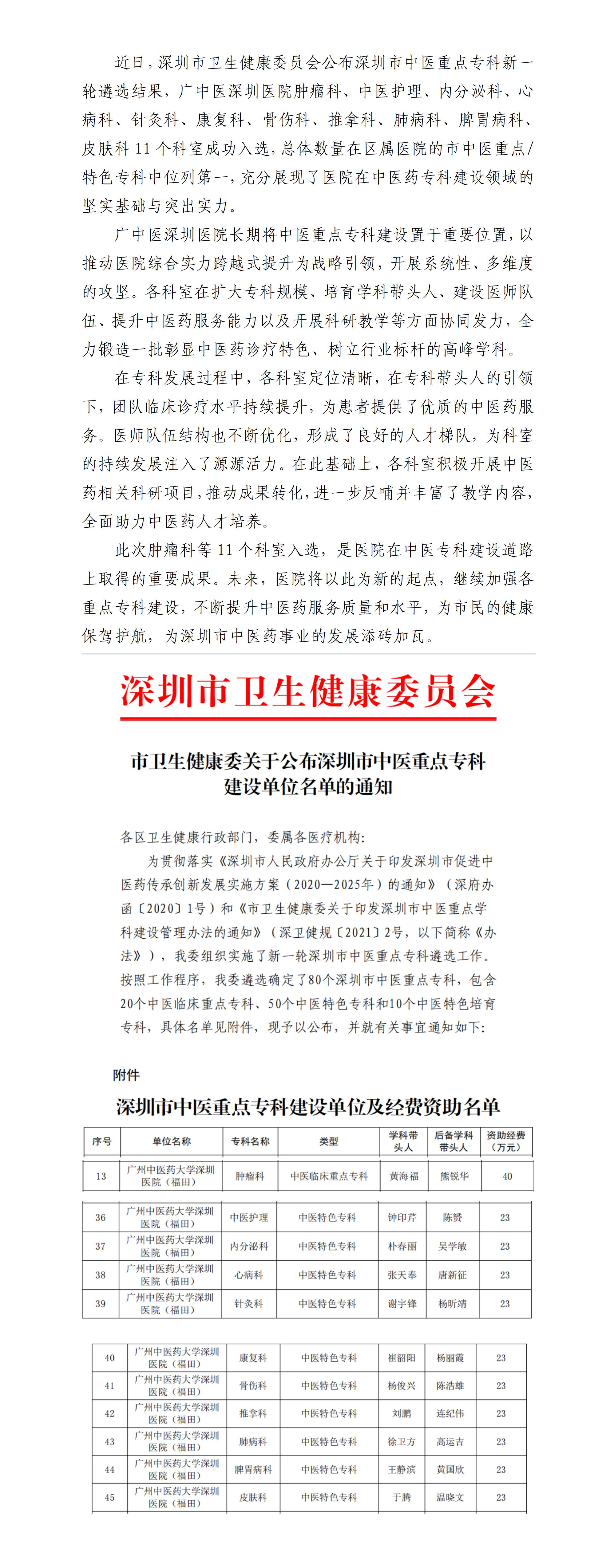 喜讯!广中医深圳医院肿瘤科等11个科室入选深圳市中医重点/特色专科